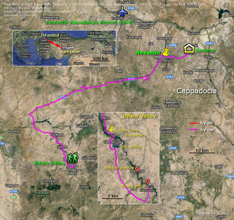 Турция 2009. Каппадокия. Карта-схема путешествия.